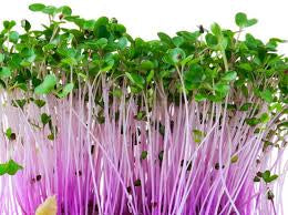 Boasting a delightful mild cabbage taste with sweet, nutty undertones, these striking purple-stemmed microgreens add both visual appeal and nutritional power to your dishes.